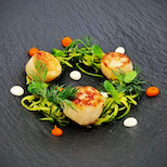 St Jacques saisie, Chips de Betterave épicée Pomme Verte & Purée de Betterave